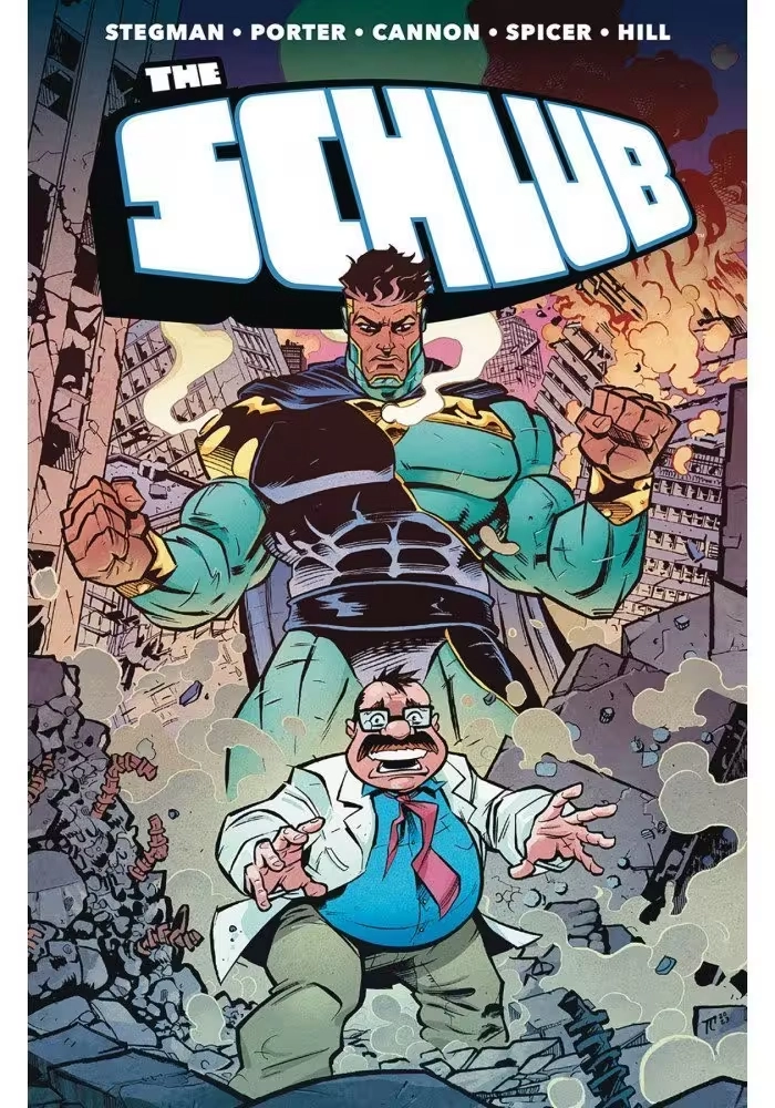 RYAN STEGMAN (VANISH,Venom),KENNY PORTER (Superboy,The Flash),TYRELL CANNON (Beef Bros),MIKE SPICER (Beta Ray Bill),and JOHN J. HILL (Harley Quinn) team up for a new action/comedy series! Failing dentist Roger Dalton blames the world for his problems until he is body-swapped with the world's greatest superhero. Can Roger save Earth and finally prove to his family he's not a loser? Or are we doomed? Featuring cataclysmic clashes! Enraged parents! Outer space action! Tender Romance! Brutal fisticuffs! Tooth extractions! All this and more in one colossal collection. Collects THE SCHLUB #1-6