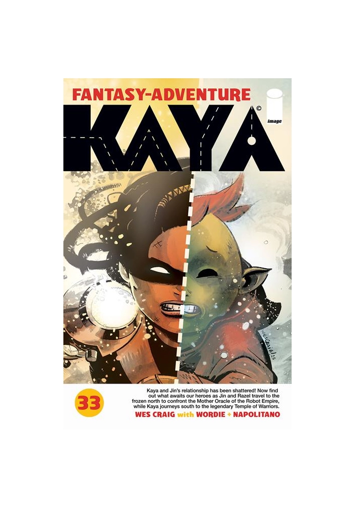 Kaya and Jin’s relationship has been shattered! Now find out what awaits our heroes as Jin and Razel travel to the frozen north to confront the Mother Oracle of the Robot Empire, while Kaya journeys south to the legendary Temple of Warriors. After the star-studded side quest of COLOSSAL KAYA and the future shock of Kaya #32, the next thrilling chapter in Kaya’s story begins here!